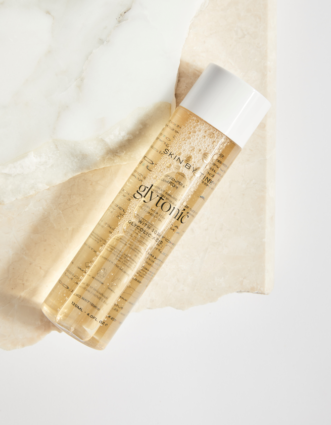 Skin By Tink’s Glytonic is a 10% glycolic acid formula that will leave your skin feeling instantly renewed, thanks to our uniquely formulated blend of exfoliating and brightening ingredients that target congestion, fine lines, pigmentation and enlarged pores. Made with prickly pear and liquorice extracts for added age-defying and brightening benefits.